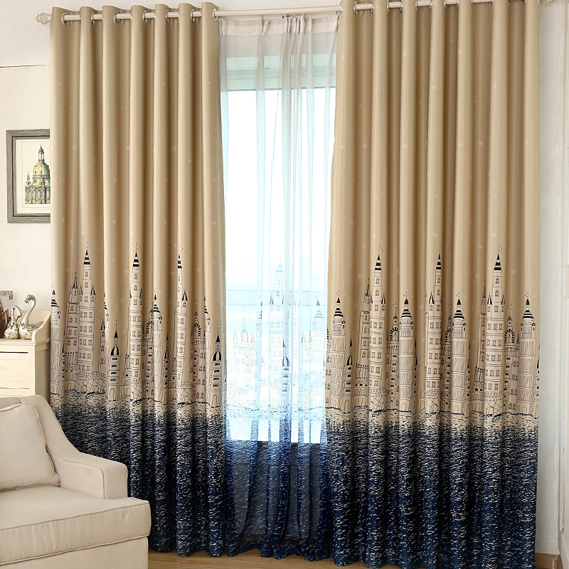 Kids Bedroom Castle Patterns Wide Blackout Curtains
