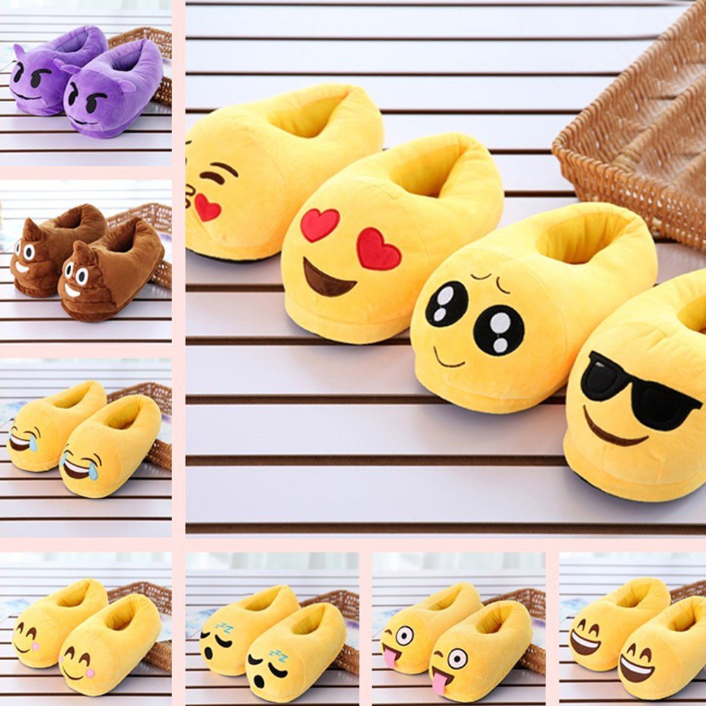 Emoji Bedroom Home Plush Slippers Warm Cute Cartoon Adults